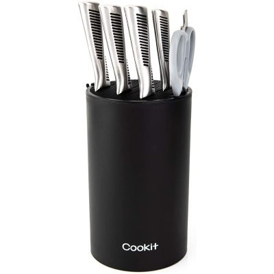Knife Block Holder, Universal Knife Block without Knives, Unique Double-Layer Wavy Design, Round Black Knife Holder for Kitchen, Space Saver Knife Storage with Scissors Slot Amazon Platform Banned